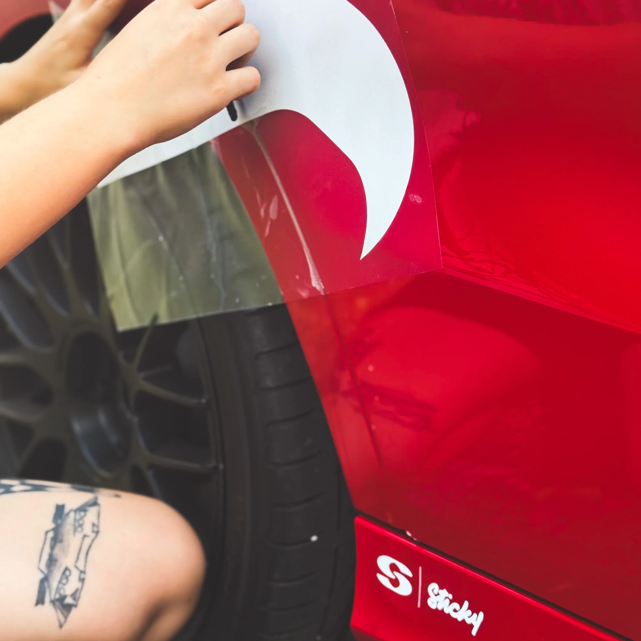 Nálepku nalepíš spolu s prenosovou fóliou, pritlačíš a následne pomaly odlepíš prenosovú fóliu.